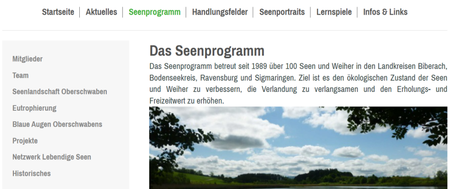 Sie sind auf der Internet‐Seite von dem Seenprogramm.