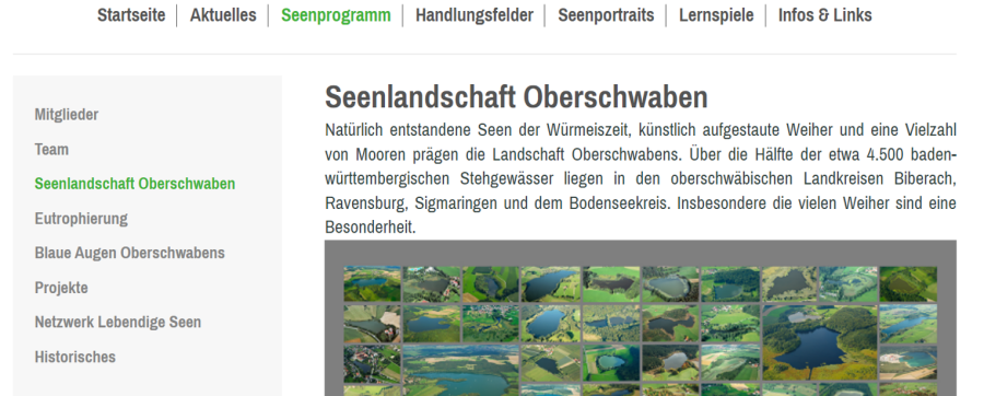 Die Internet-Seite von dem Seenprogramm hat sehr viele Inhalte.