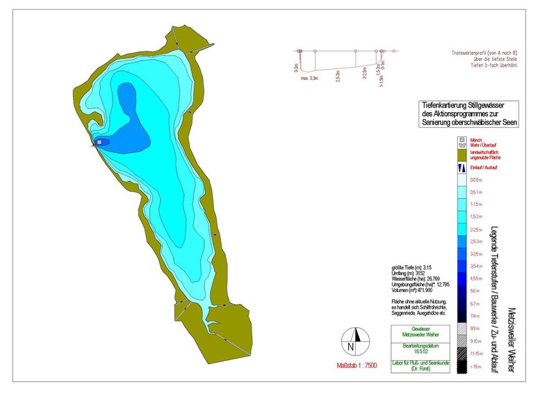 2005 abgelassen und teilgewintert; im Weiher abgefischt, da Problem am Auslaufrohr; Teichmuscheln in tiefere Bereiche umgesetzt; hoher Schlammaustrag, Absetzbecken funktionierte gut; Fischertrag 3.900 kg, darunter 20-50 Graskarpfen (8 große)